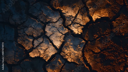 Intense overhead view captures deep fissures in desiccated earth under dramatic lighting