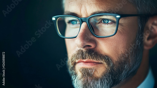 man, contemplation, goggles, beard, portrait, thoughtful, serious, pensive, intellectual, mature, businessman, leader, executive, professional, eyewear, face, male, grey, hair, photogenic, close, up, thinking, looking, smart, confident, style, modern, adult, person, eye, blue, 1, human, focused, stylish, elegant, fashion