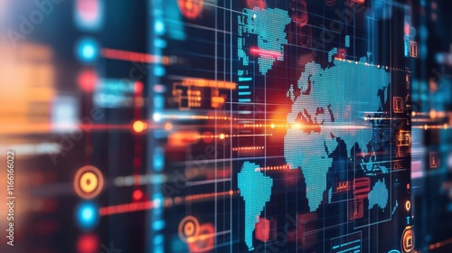 Interactive world map on digital screen, exploring global data, insights, and connectivity