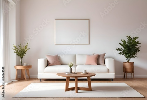 Interior living room with sofa and photo frame. 3D rendering