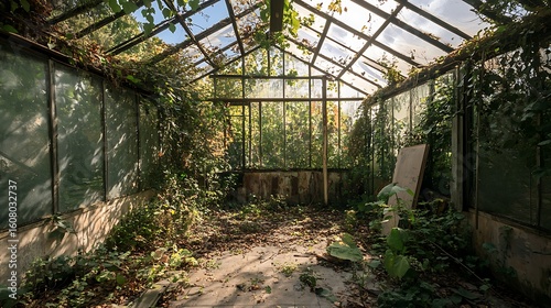 greenhouse, abandoned, overgrown, plant, leaf, interior, glasses, structure, decay, nature, vegetation, garden, building, architecture, light, sunlight, tile, floor, ruin, weathered, vine, ivy, window, frame, roof, beam, sky, tree, foliage, dirt, aged, rustic, vintage, forgotten, empty, derelict, growth, flora