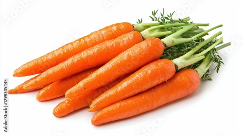 International carrot day with vegetable and harvest idea. Fresh, vibrant carrots arranged with green tops on white background.