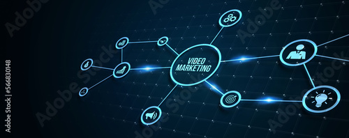 Internet, business, Technology and network concept. Video marketing and advertising concept on screen. 3d illustration.