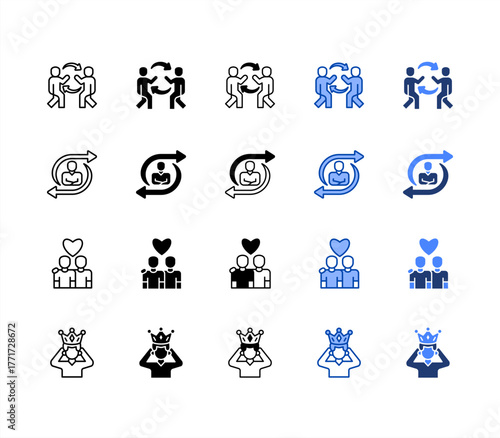 Interpersonal skills, Flexibility, Empathy, Confidence multiple style icon set.
