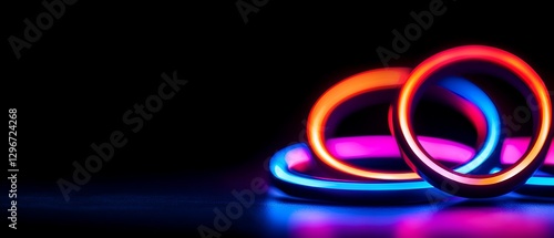 intertwined, neon, light, ring, circle, illumination, spectacle, abstract, energy, background, illuminated, colourful, vibrant, bright, dynamic, design, glowing, graphic, technology, dark, futuristic, shape, modern, creative, artistic, pattern, art, style, curve, intense, powerful, visual, aesthetic, shadow, texture