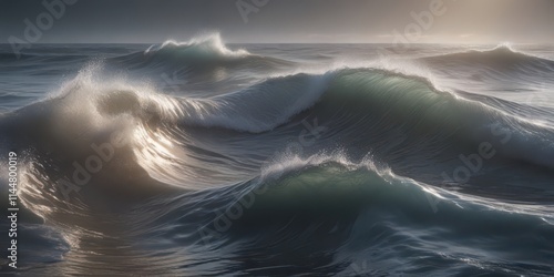 Intertwined, translucent waves with gradient shading , soft, water, digital art