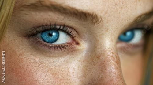 Intimate Portrait of a Woman with Striking Blue Eyes Gazing Directly at the Camera