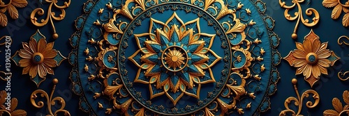 Intricate and elegant luxury ornamental mandala design background with gold accents, background, decorative