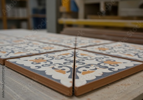 Intricate ceramic tiles with mosaic pattern in workshop setting