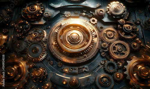 gear, cog, wheel, clockwork, mechanism, machinery, technology, engineering, industrial, metal, bronze, gold, copper, intricate, complex, detailed, design, texture, pattern, background, abstract, art, three-dimensional, render, image, graphic, illustration, futuristic, vintage, retro, antique, ornate, polished, shiny, dark, shadow, light, glow, precision, movement, power, energy, detail, craftsmanship, machine, assembly, part, component