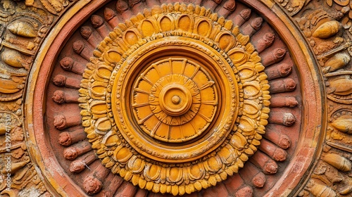 texture, pattern, artifact, detail, decoration, design, art, surface, craftsmanship, colourful, bright, light, organic, round, symmetry, culture, historical, ancient, high-coloured, circular, element, style, relief, inspiration, architecture, representation, visual, heritage, ornament, intricate, beauty, uniqueness, warmth, depth, illustration, motif, creativity, vibrant, artistic, storytelling, wonders, stone, traditional