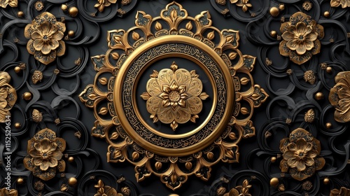 mandala, floral, gold, black, pattern, design, art, ornate, decorative, luxury, elegant, intricate, detail, texture, background, wallpaper, three-dimensional, rendering, abstract, geometry, symmetry, arabesque, islamic, oriental, culture, motif, vintage, classic, royals, premium, stylish, sophisticated, beautiful, aesthetic, decoration, graphic, illustration, artwork, element, template