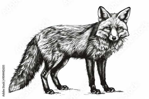 Intricate Hand-Drawn Fox Engraving: Black and White Ink Sketch