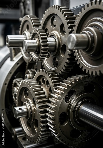 Intricate mechanical gears and cogs assembly showing complex industrial mechanism