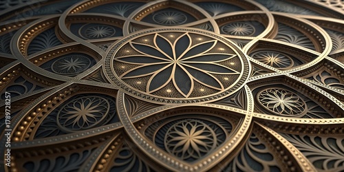 Intricate metallic fractal design showcasing geometric patterns and rich textures in shimmering gold and silver hues