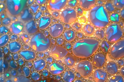 Intricate opal texture background, shimmering with iridescent rainbow hues and subtle variations in light and color, design, wallpaper, iridescent