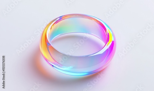 Iridescent glass ring, colorful, smooth, shiny, isolated on white background.