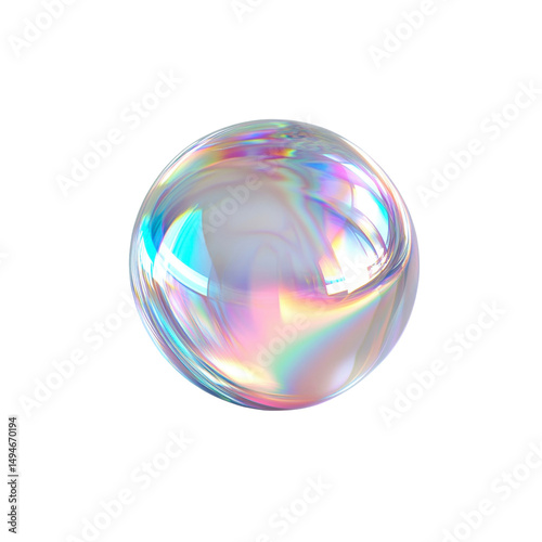 Iridescent Holographic Sphere, Abstract Bubble, 3D Render