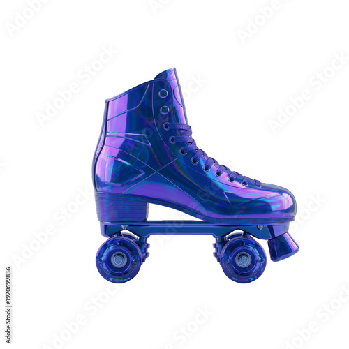 rollerskate, skate, shoe, vintage, retro, fashion, purple, iridescent, chrome, metallic, futuristic, sport, leisure, dance, rollerblading, apparel, footwear, style, wheel, transport, fun, individual, object, studio, isolated, cut-out