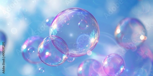 iridescent, blue skies, semitransparent, floating, colourful, spectrum, vibrant, shiny, bubble, airy, ephemeral, delicate, light, dreamy, summer, gleaming, rainbow colours, clear, sky, bright, serenity, playful, joy, nature, outdoors, purity, calm, day, lightness, ball-shaped, magical, wonder, transparent, fun, levitation, beauty, atmospheric