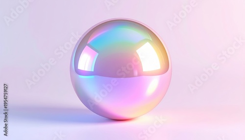 Iridescent Sphere Reflecting Soft Pastel Colors.