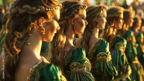 Irish Dancers in Green and Gold Costumes Performing at St. Patrick's Day Event