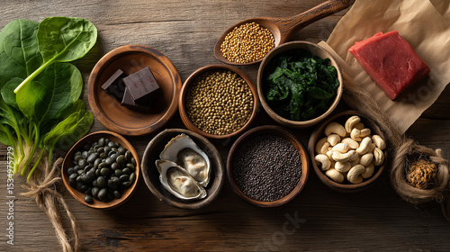 food, arrangement, wooden, table, nourishment, leafy, greener, meat, rustic, healthy, diet, ingredient, cooking, meal, receipe, wellness, organic, fresh, balanced, source, protein, vitamin, mineral, energy, nourishment, ingredient, food, spice, seed, herb, green, iron, rich, spinach, beef, red meat, lentil, dark chocolate, nut, tofu, oyster