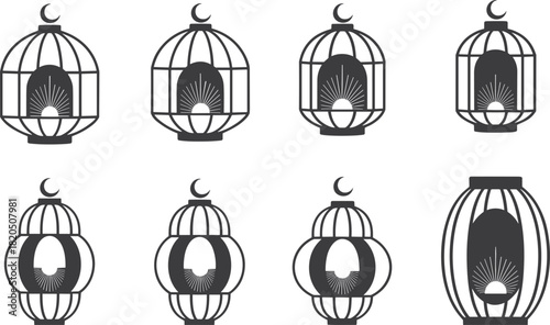 islamic, lantern, ramadan, decoration, ornament, crescent moon, star, light, traditional, cultural, religious, celebration, festival, ornate, intricate, pattern, silhouette, graphic, design, element, symbol, icon, vector, illustration, art, graphic design, decorative, hanging, ancient, oriental, middle eastern, arabic, eid, festive, ornamental, geometric, motif, stylised, black-and-white, isolated, white background