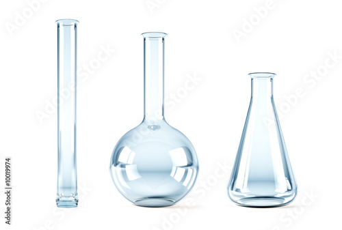 isolated 3d rendering of the empty chemical flasks