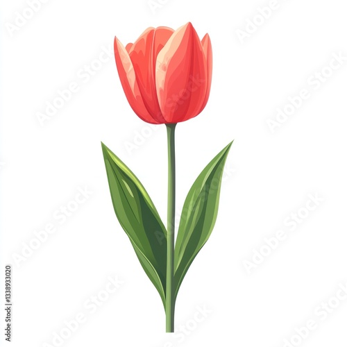 tulip, flower, coral, red, spring, floral, illustration, botanical, art, design, nature, blossom, vector, graphic, image, decorative, pretty, vibrant, single, beautiful, isolated, delicate, pink, elegant, design element, spring flower, blooming, garden, leaf, stem, graphic design, digital artwork, colours, natural, red flower, plant, summer flowers, springtime, pink flower