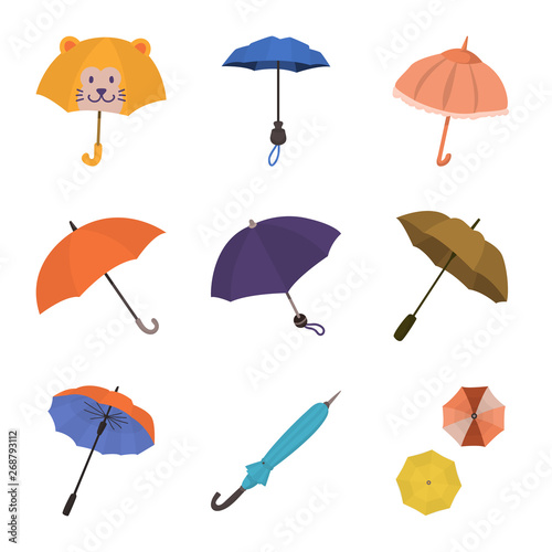 parasol, children, coverage, water, spring, autumn, summer, shadow, support, blue, monsoon, storm, colourful, classic, yellow, meteorology, climate, insurance, orange, canopy, blank, umbrella, rain, season, weather, rainy, open, protection, closed, fashion, safety, set, vector, icon, illustration, isolated, collection, design, element, graphic, signs, cartoon, colours