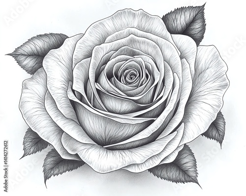 Isolated on white, dark romantic rose tattoo with gothic shading and dramatic contrast, moody and magazineready