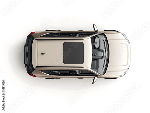 Isolated simple and metallic suv car with open doors from top view on a white background that is easily removable