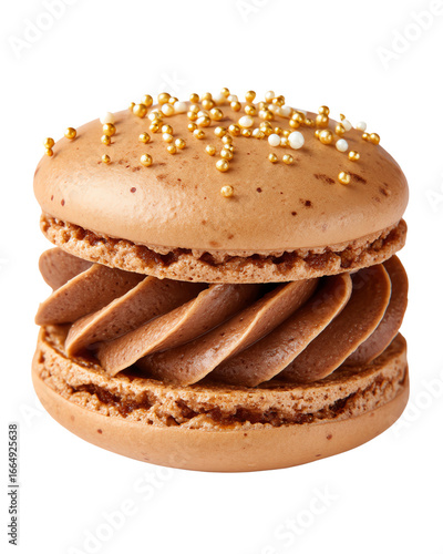 Isolated transparent png Macarons with Fresh Fruit Chocolate macaron filled with rich cream and adorned with decorative beads.
