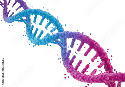 Isolated Vibrant Double Helix DNA Strand with Particles, Representing Genetics and Science
