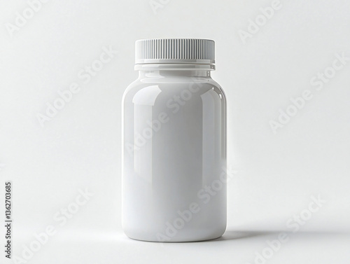 Isolated White Plastic Bottle with Cap for Design Mock-Up of Supplement or Vitamin Product Packaging and Labeling