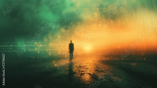 Isolated Within: In a sea of blurs, one figure stands sharply, the weight of social anxiety pressing down.