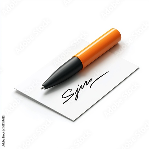 Isometric 3D Cartoon-Style Signature Icon with Rounded Edges on Isolated White Background