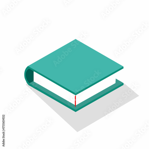 book, isometric, illustration, closed, teal, cover, red, bookmark, paper, reading, cognition, education, literature, story, novel, text, page, publication, learning, library, study, school, college, university, information, content, design, graphic, flat, style, object, single, isolated, white, background, shadow, vector, art, icon, symbol, signs, element, simple, modern, minimal, concept, idea, creative, abstract