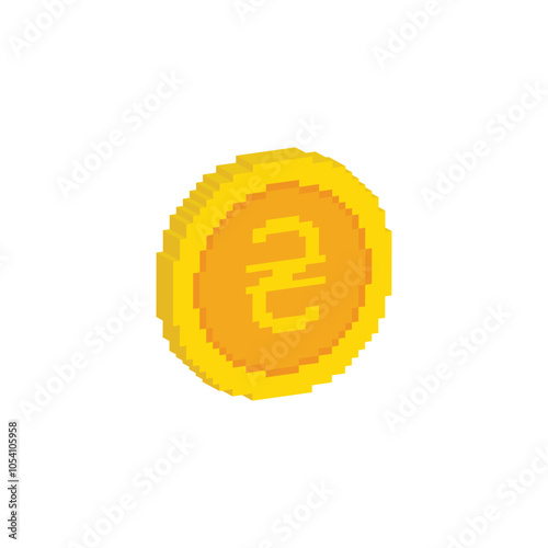 isometric pixel Ukrainian coin hryvnia pixel art money sign for 8 bit game