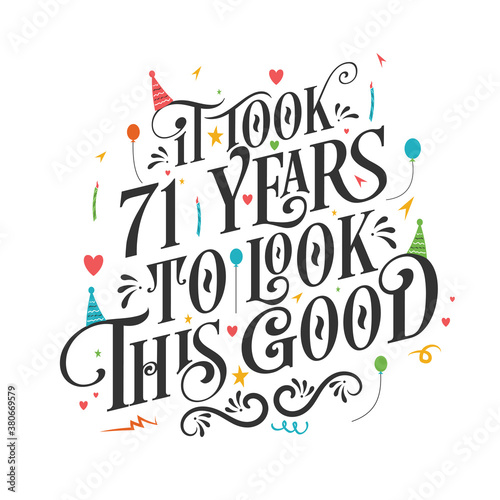 It took 71 years to look this good - 71 Birthday and 71 Anniversary celebration with beautiful calligraphic lettering design.