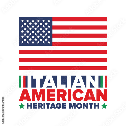 Italian American Heritage Month. Happy holiday celebrate annual in October. Italy and United States flag. Culture month. Patriotic design. Poster, card, banner, template. Vector illustration