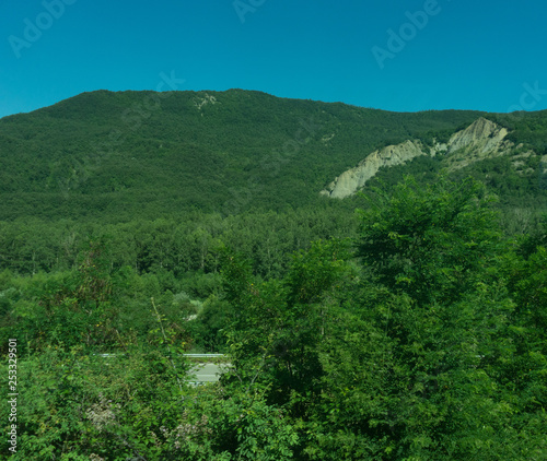 architecture, blue, day, environment, europa, forest, hill, historical, italy, italian, italy, mountain chain, nature, no people, outdoors, outskirts, rural scene, scenic, sky, travel, vale, wonder, ecosystem, green, highland, hillside, landmark, landscape, lush, mountain, nature reserve, plant, rural, summer, tree, vacation, vegetation, wilderness