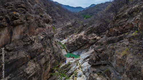 Jagueyes de Mayascon, a natural oasis with crystal clear pools surrounded by mountains in Lambayeque, Peru