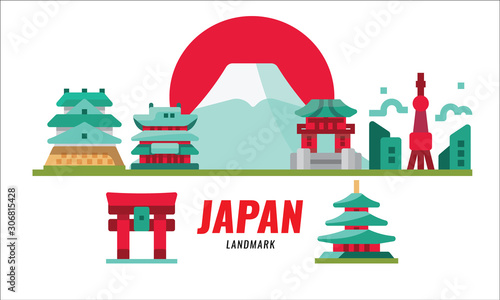 Japan landmarks. Japanese landscape and History Building. flat design elements. vector illustration