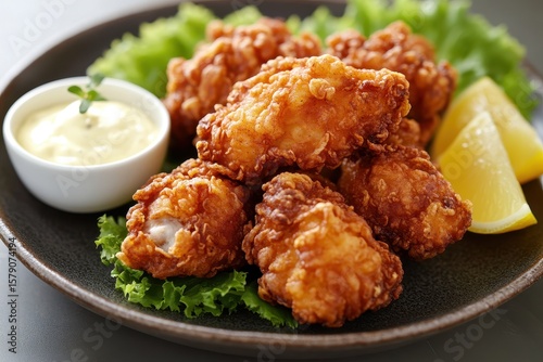 hokkaido, food, dish, meal, side dish, knob, chicken, mayo, lettuce, japanese food, comfort food, bento, home cooking, golden brown