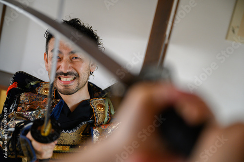 Japanese man fighting in armor Samurai
