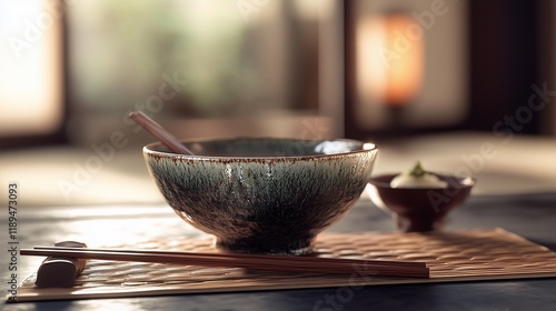 Japanese style ceramic bowl and utensils, aesthetic and authentic