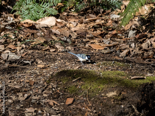 Japanese tit looks for food on forest floor 3