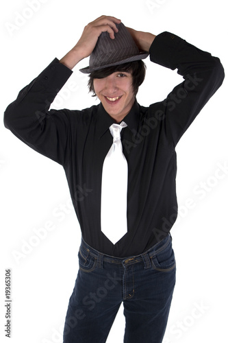 jeune homme souriant au chapeau